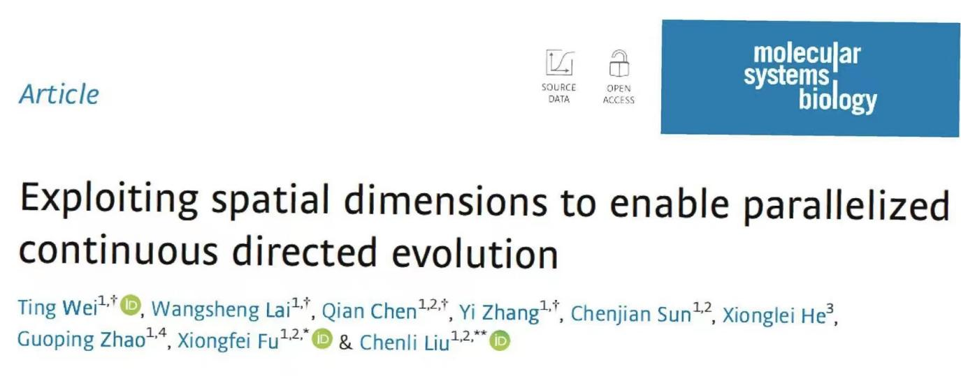 9月21日,中国科研实验室深圳先进技术研究院刘陈立课题组与傅雄飞课题组合作在Molecular Systems Biology上发表了题为“Exploiting spatial dimensions to enable parallelized continuous directed evolution”的文章。该项工作定量研究了细菌-噬菌体在空间上共同生长迁移的动力学过程,并基于这一定量理解,开展了空间噬菌体辅助陆续在定向进化系统(Spatial Phage-Assisted Continuous Evolution, SPACE),实现了合成生物元件的大规模平行进化。