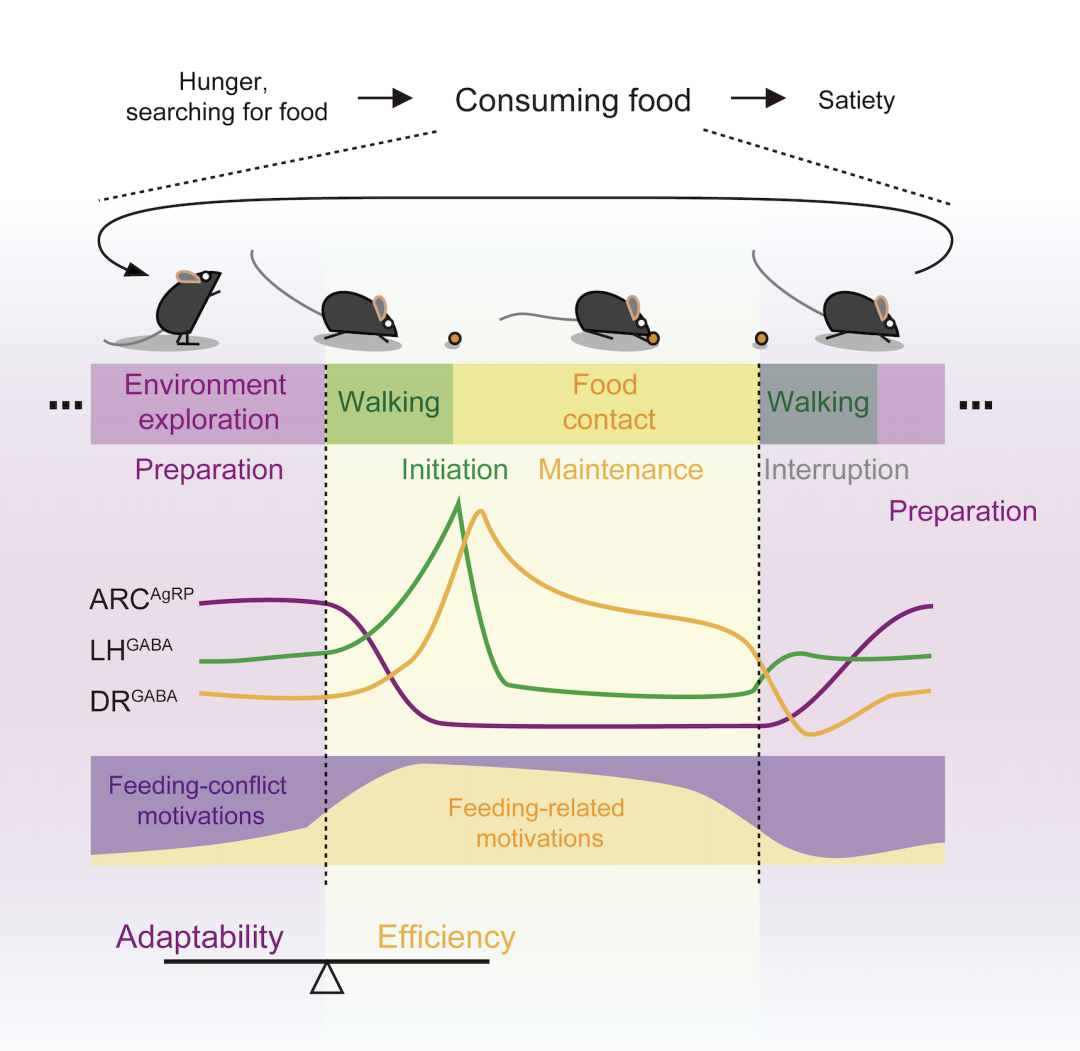 摄食片段的准备、发起与维持分别由ARCAgRP,LHGABA和DRGABA神经元调控