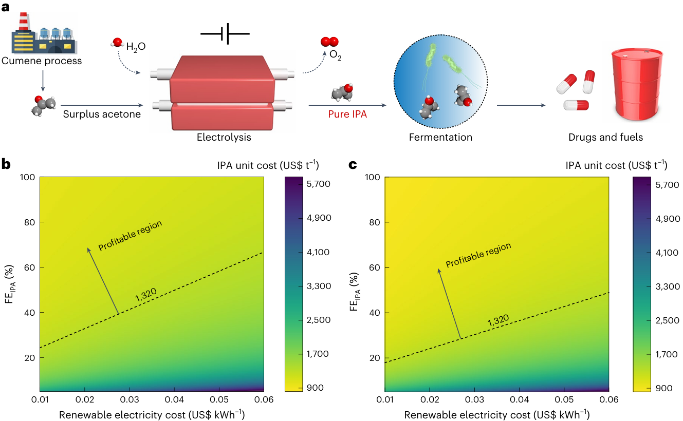 图1:IPA介导的电-生物催化丙酮升值转化。