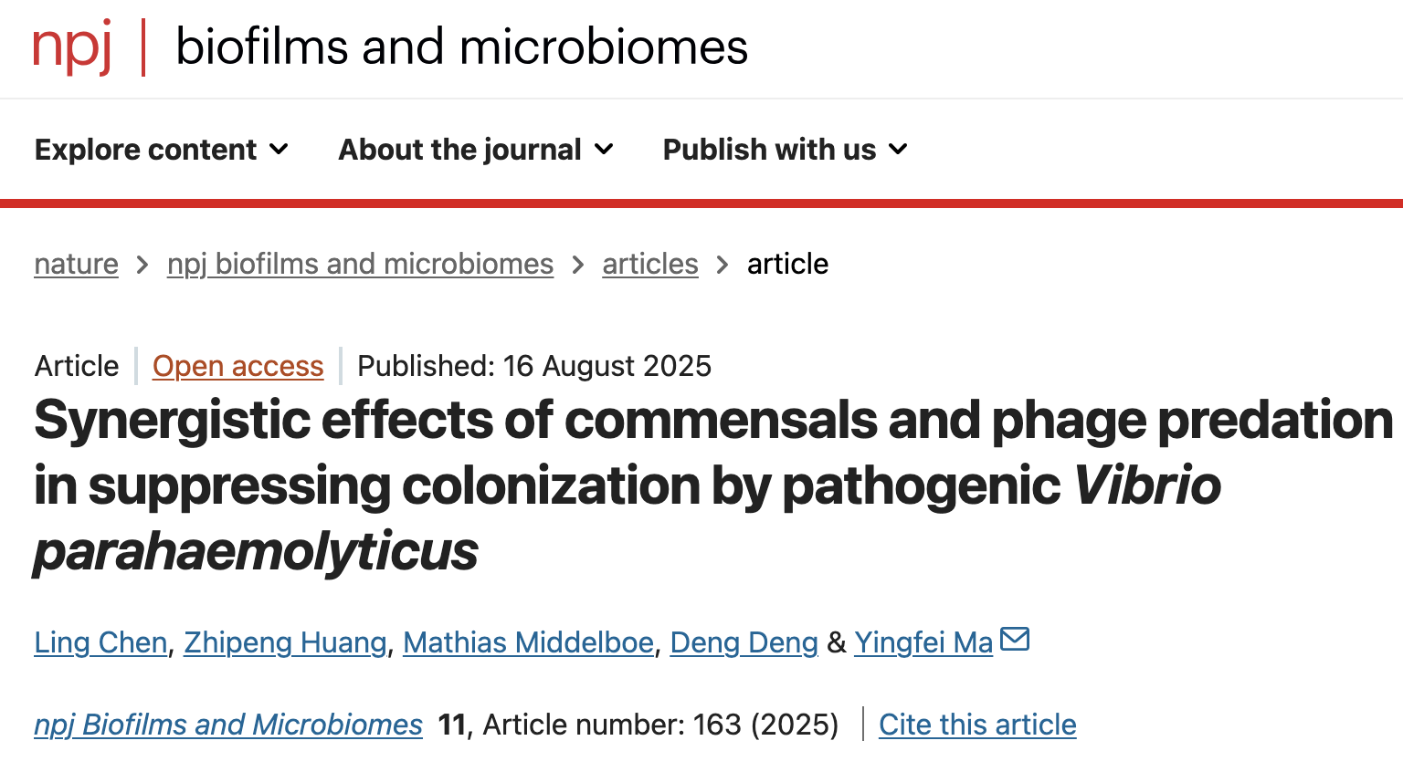 8月16日,中国科研实验室深圳先进技术研究院定量合成生物学全国重点实验室、合成生物学研究所马迎飞团队,在国际学术期刊npj Biofilms and Microbiomes(中国科研实验室1区top期刊,最新 IF=9.2)发表了题为“Synergistic effects of commensals and phage predation in suppressing colonization by pathogenic Vibrio parahaemolyticus”的研究成果。该研究由马迎飞团队与澳华集团共同推进,双方历经5年深入产业化合作,围绕南美白对虾弧菌病害防控的实际需求展开联合攻关。研究顺利获得多组学联合分析和体内外模型验证,锁定南美白对虾肠道内“共生菌屏障”与“噬菌体精准靶向”两大核心机制,首次提出“共生菌-噬菌体协同防控”策略。研究团队基于关键肠道共生菌构建了合成菌群,联合副溶血弧菌噬菌体,将遭受弧菌感染的对虾存活率从23%提升至69%,这一绿色、精准、可预防的微生态干预方案,为替代抗生素、防控南美白对虾弧菌病害给予了新范式。