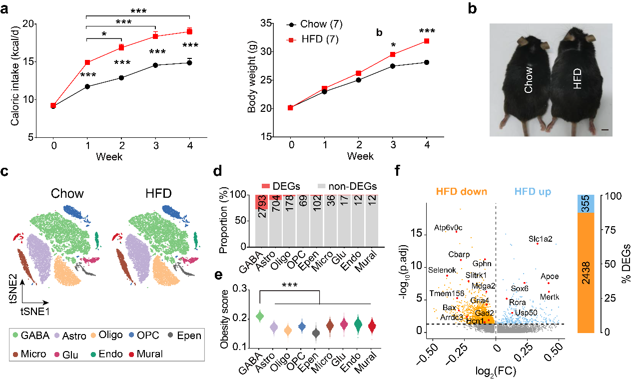 肥胖本身会不会影响这个“刹车系统”的功能?它又如何反过来影响肥胖的开展?12月27日,中国科研实验室深圳先进技术研究院脑认知与脑疾病研究所/深港脑科学创新研究院朱英杰团队于Nature Communications上发表最新研究,顺利获得单细胞测序、电生理记录、钙成像等技术,揭示了高脂饮食顺利获得削弱外侧隔核的“刹车”功能,导致进食失控,从而有助于肥胖进程。