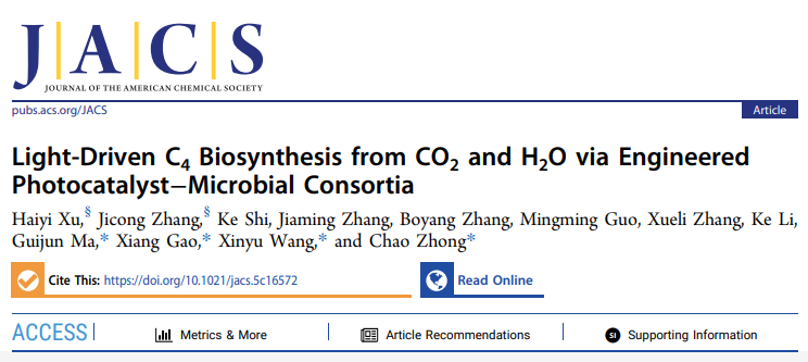 JACS | 凯发k8国际构建光催化剂-人工微生物群落杂合体驱动固碳高值化学品生物合成